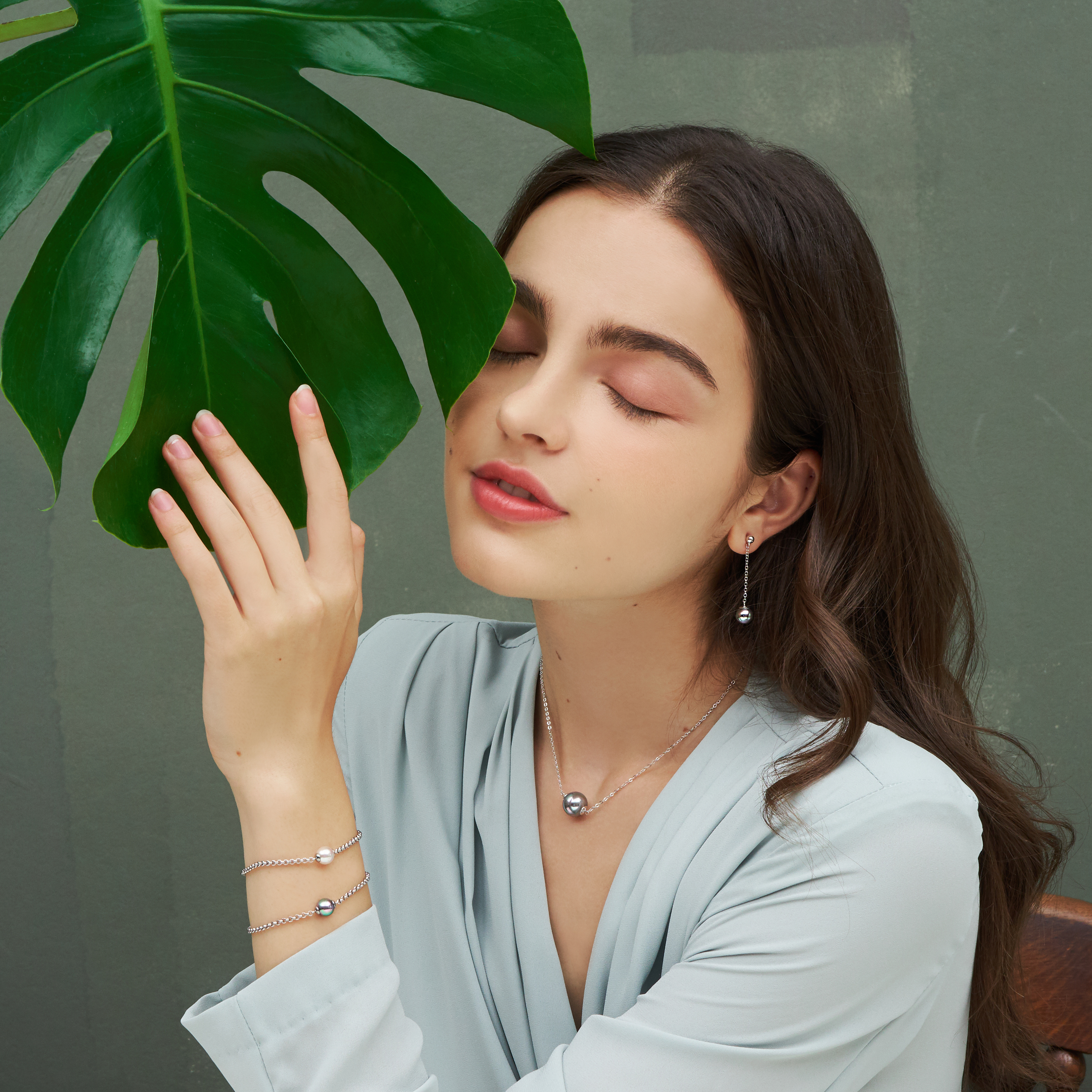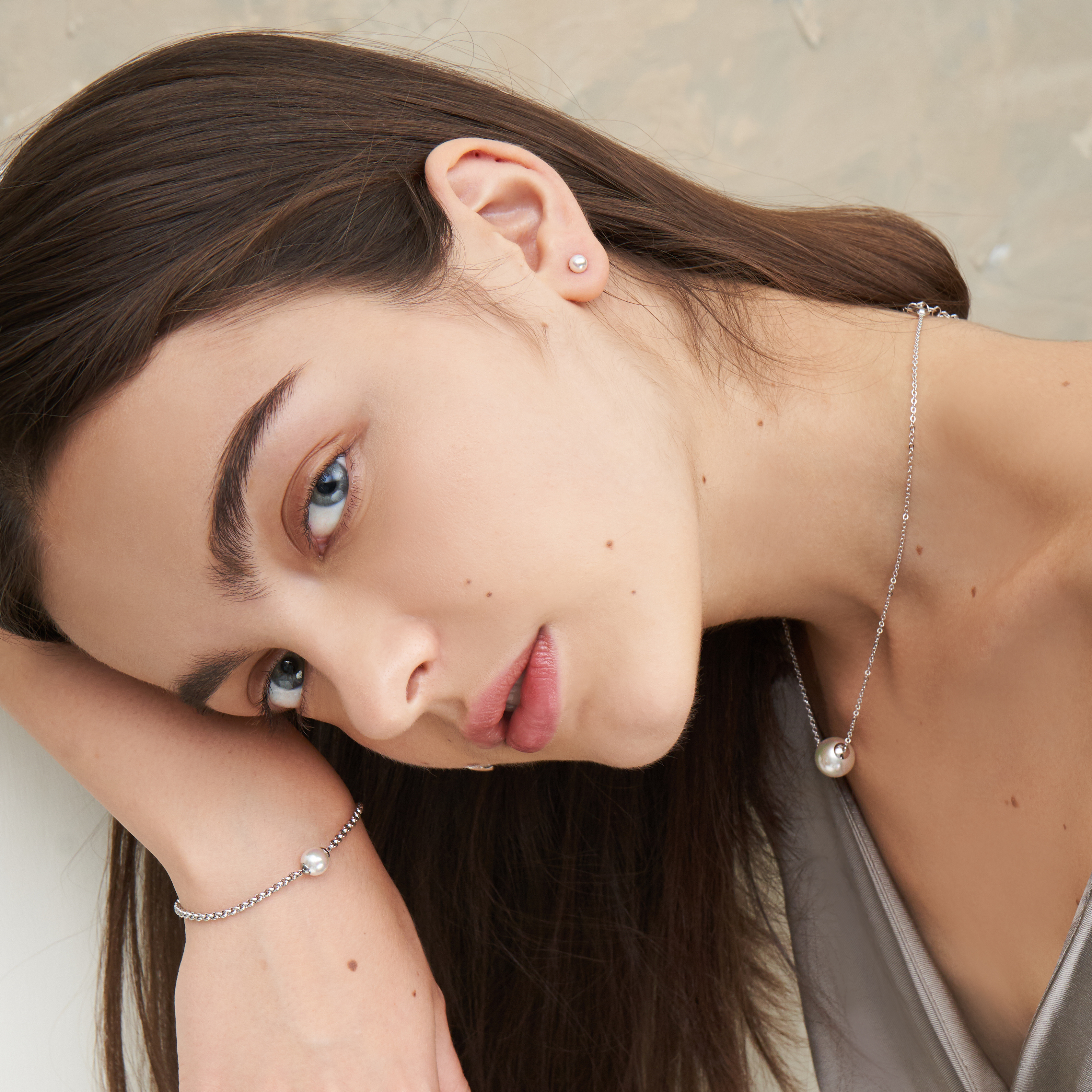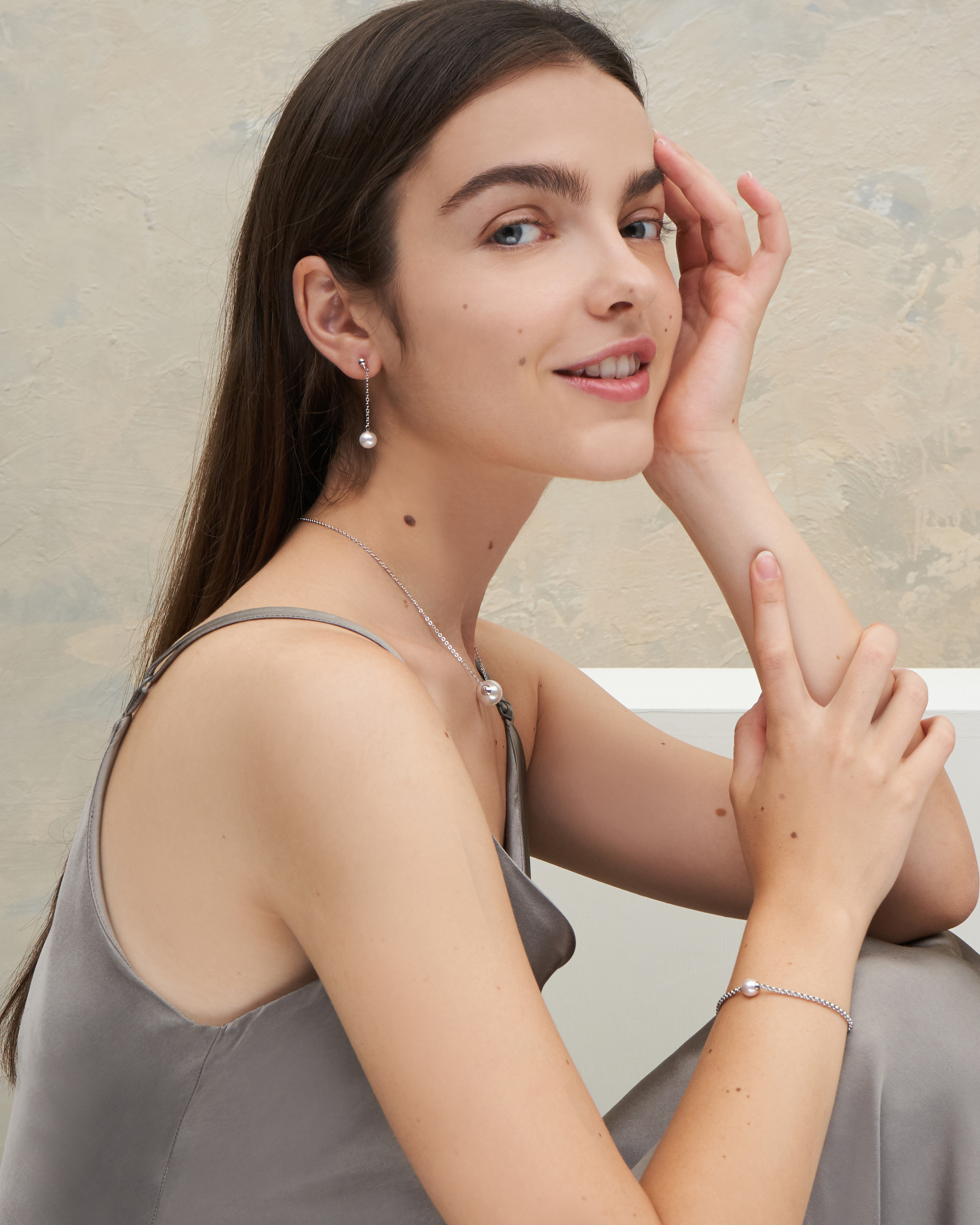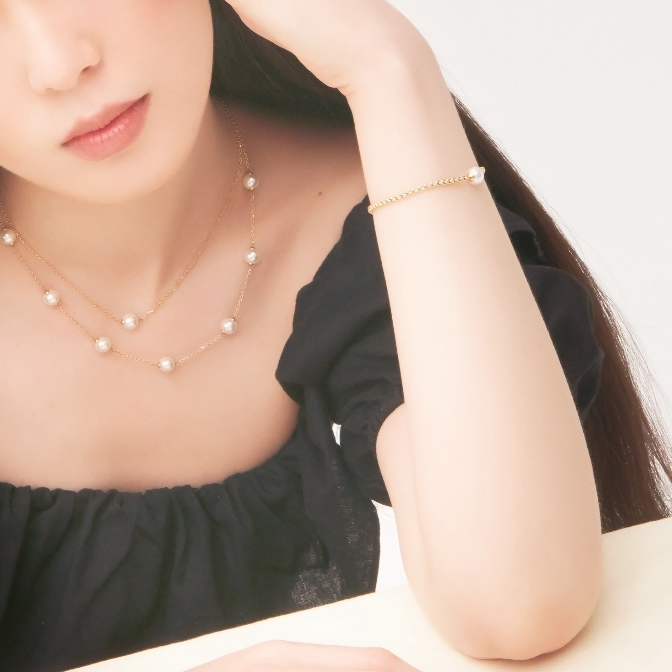 同為經典的單珠吊墜,手鍊與項鍊上的單珠相互烘托,映照出獨有的珍珠之美,那是一種典雅不凡的溫柔雅韻。日常的簡約穿著不妨加入這兩項配飾,整個人多了分精緻品味。
