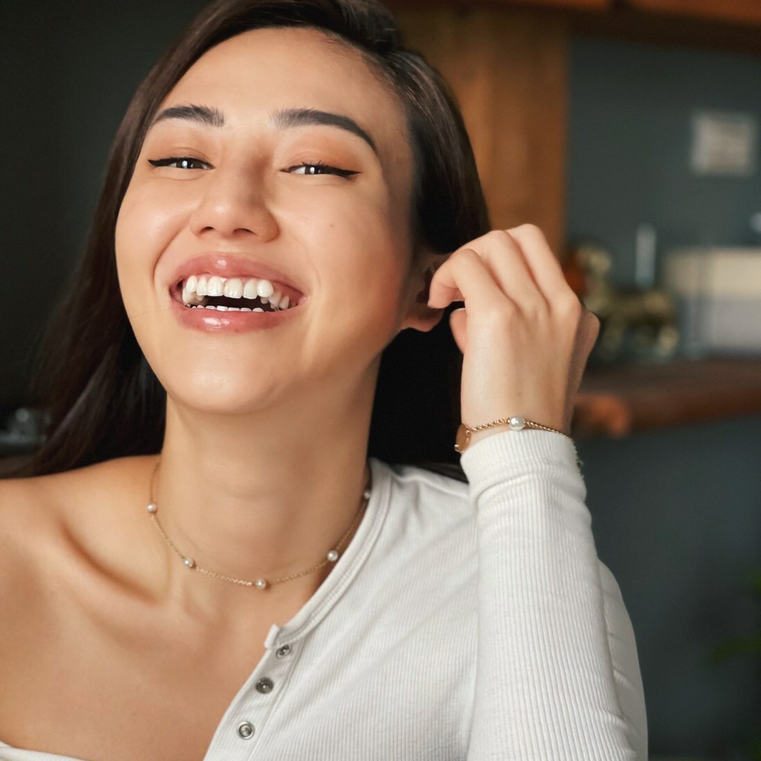 毛衣牛仔酷的穿搭,配上Alexa鏈條珍珠項鍊,偷偷地將一邊的毛衣下拉,露出香肩,細膩優雅且個性十足,摩登女孩直接穿去上班上學也非常合適;亦或是搭配 Illusion 5mm珍珠短鏈,與珍珠串鍊相似卻又更輕盈細緻,無負擔的百搭飾品,無須過度盛裝打扮,一條項鍊就為你大大提升精緻感!