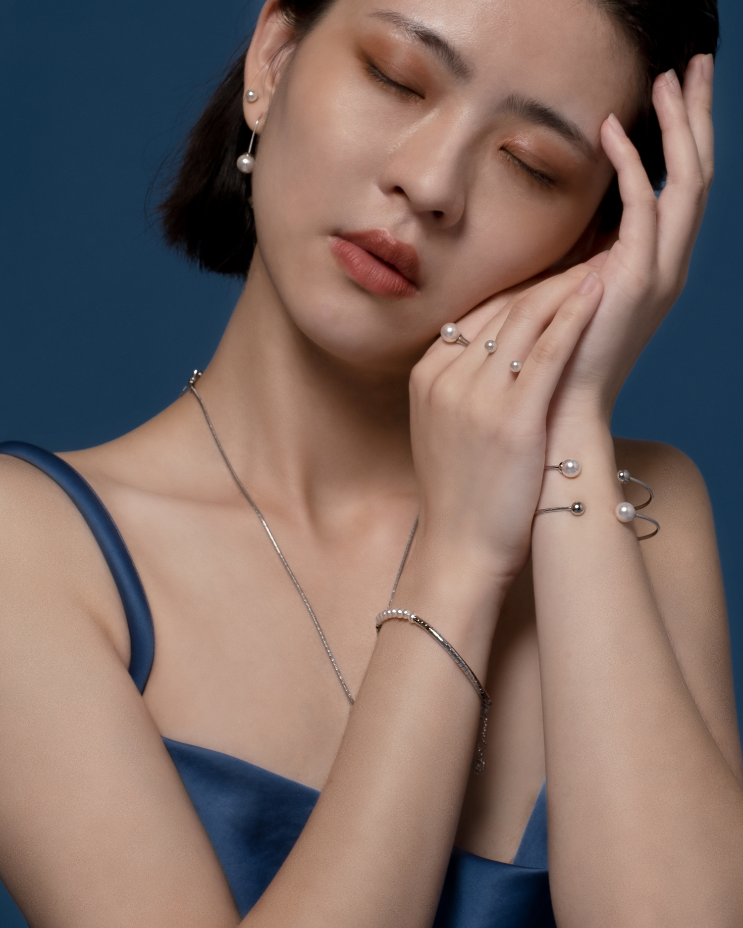「下筆創作之前,我往往會先好好感受 — 當我看到 ME30 的珠寶時,腦中自然浮現許多想法。」儘管畫面尚模糊未定,將想象中的姿態、氛圍、色調、外貌,快速地在紙上畫出草圖,經過後續不斷地溝通與整理,逐步精緻畫面,最終順利完成作品。「我本身也很喜歡珍珠與銀飾的搭配,整個創作過程十分愉悅;自己平時也會穿搭類似的飾品,不過當然是男性款式啦!」
