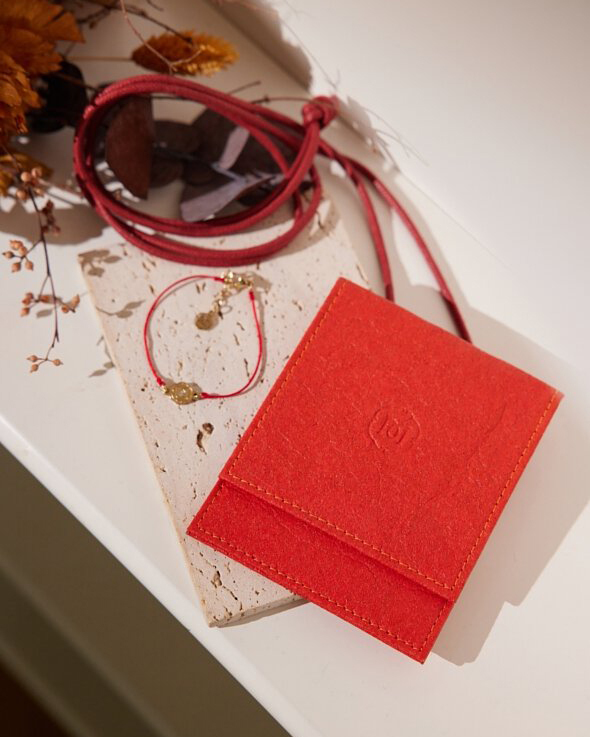 精選Earth Friendly Piñatex® 鳳梨纖維皮革素材,融入象徵活力與希望以及新年的活力紅,方便配戴的斜背帶,是品牌Easy to Wear的承諾,小巧細膩的車工展現Elegance的一面,用Equality的選擇,對環境友好的生活方式!