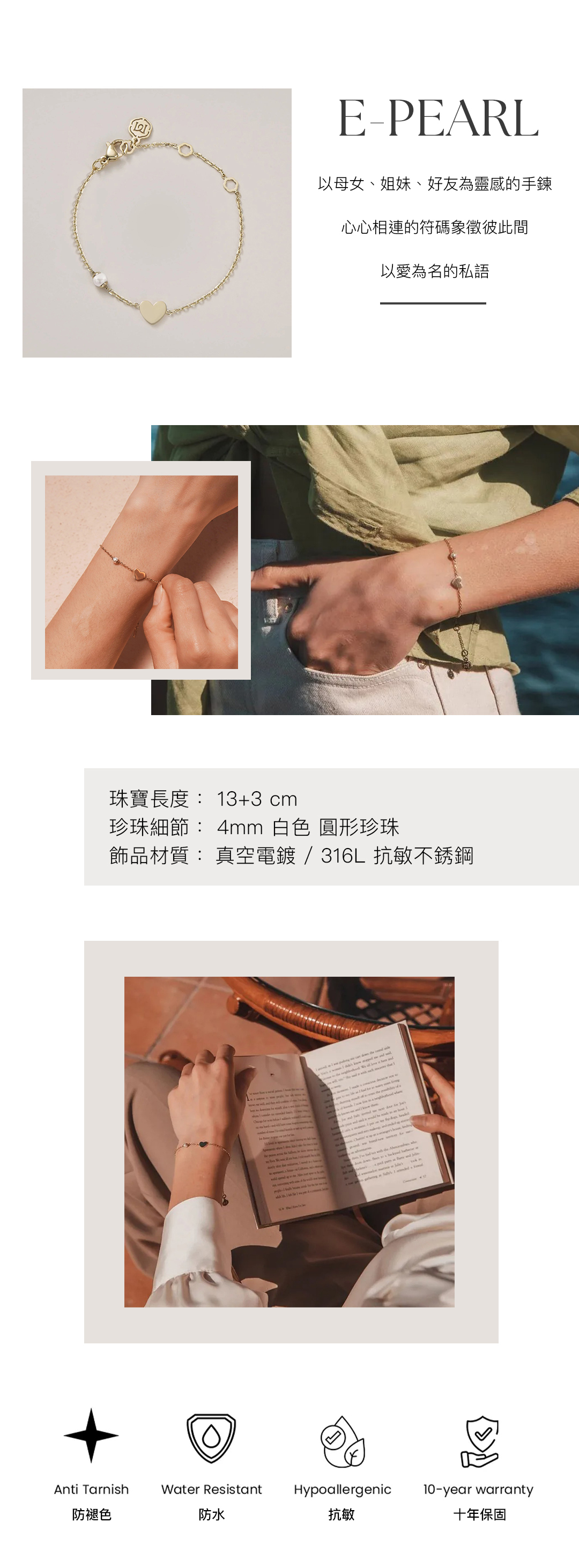 珠寶材質: 316 抗敏不銹鋼 / 真空電鍍