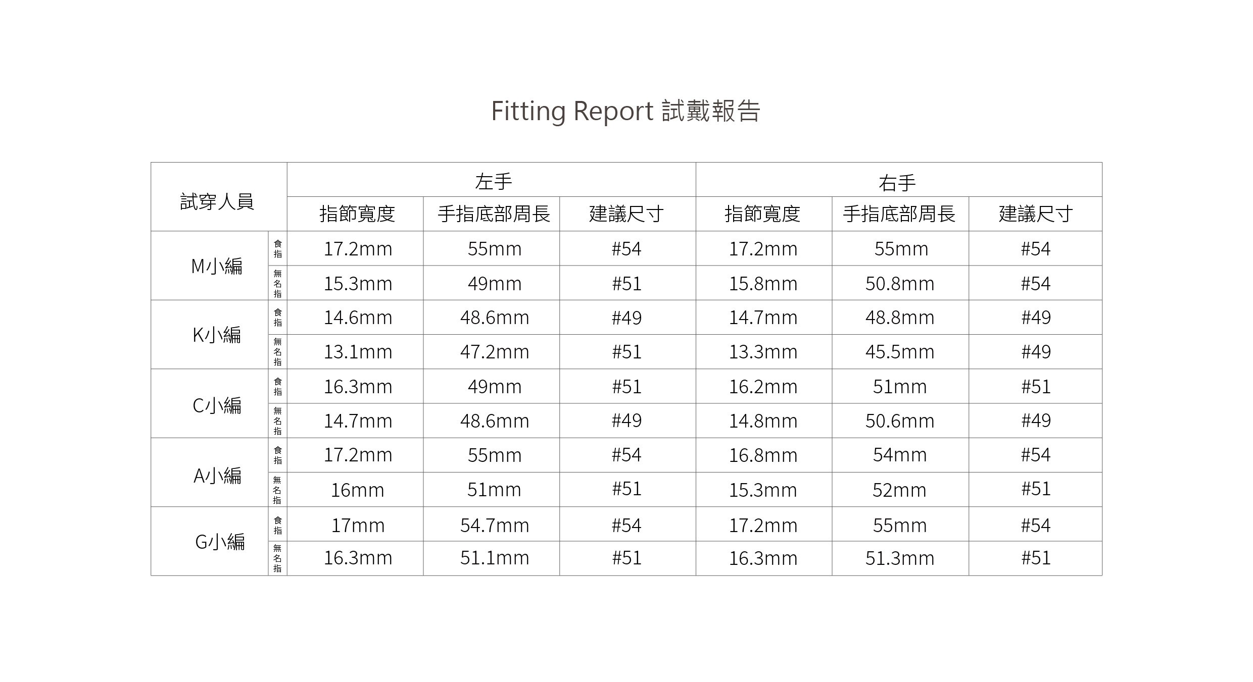 戒圍尺寸:#49 # 51 #54 (尺寸對照表如下圖)