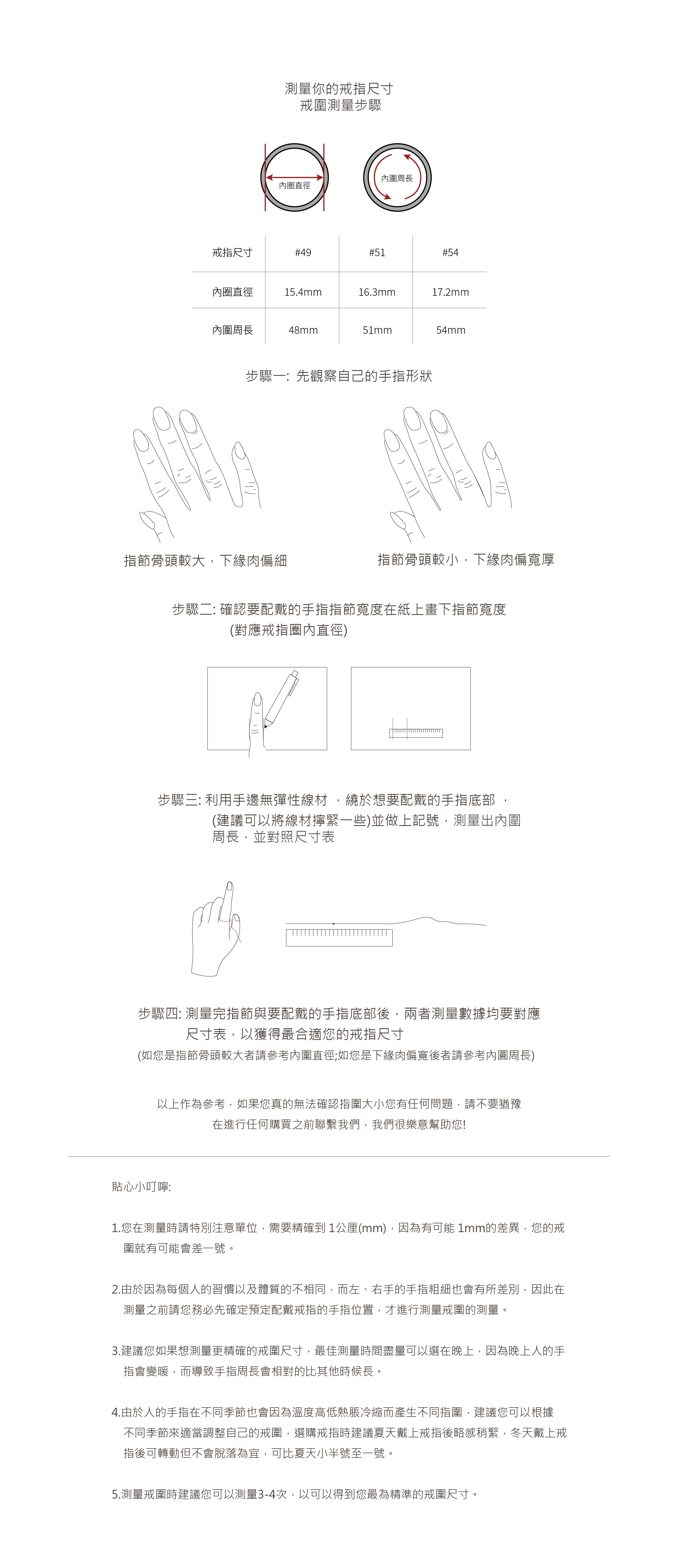 戒圍尺寸: #49 #51 #54(尺寸對照表如下圖)